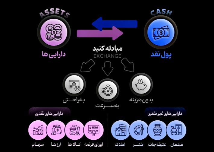 یا مثال دیگری بزنیم خودتان را در روستای دور افتاده با یک ماشین بی ام و گران قیمت در نظر بگیرید حالا در اون روستا تصمیم دارید ماشین گران قیمت تان را بفروشید اما مردم اونقدر پول برای خرید ماشین شما ندارند بنابراین باید گفت لیکوئیدیتی دارایی شما کم هست.